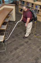 L’aspiratore a spalla Tennant V-BP-7 ha il vantaggio di poter aspirare sia i pavimenti che le superfici in altezza, difficilmente raggiungibili con un aspirapolvere convenzionale.